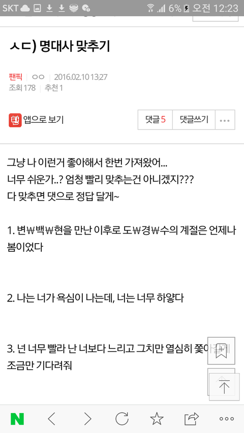 팬2픽톡 명대사 재탕하는데 모르는게 많음 ㅜ