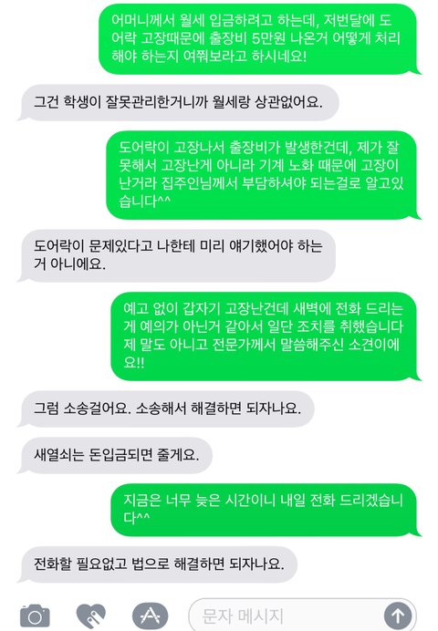 월 초라 월세 입금 하려고 하는데 엄마께서는 제 불찰이 아니니 출장비도 집주인께 받아야 한다 라고 말씀하셔서 문자로 여쭤 봤죠..