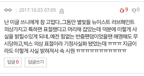 인기 없음 뚜들겨 패도 되냐? 아까 러브가 쓴 글이던데 눈물 나오더라 사과해라 당장