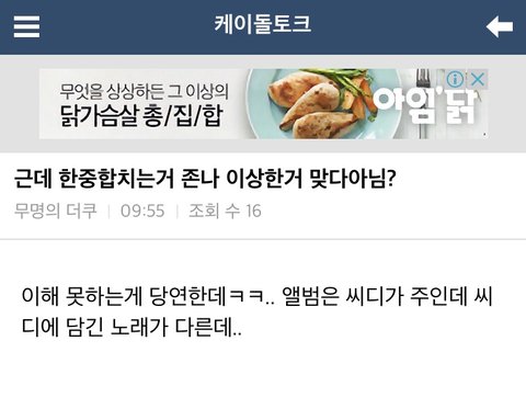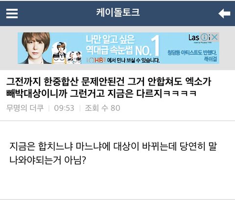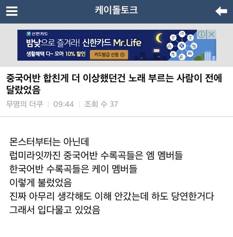 댓글이 몇십개가 되는데 다 이상하다고 중국어 빼라는 내용밖에 없어 너무 심해 지금은 플로우 다 지나갔는데 ㄷㅋ갔을때 저런 글들 보이면 제발 정정해주라 저기 거의 정치질이 먹혔어..제발ㅜㅜ