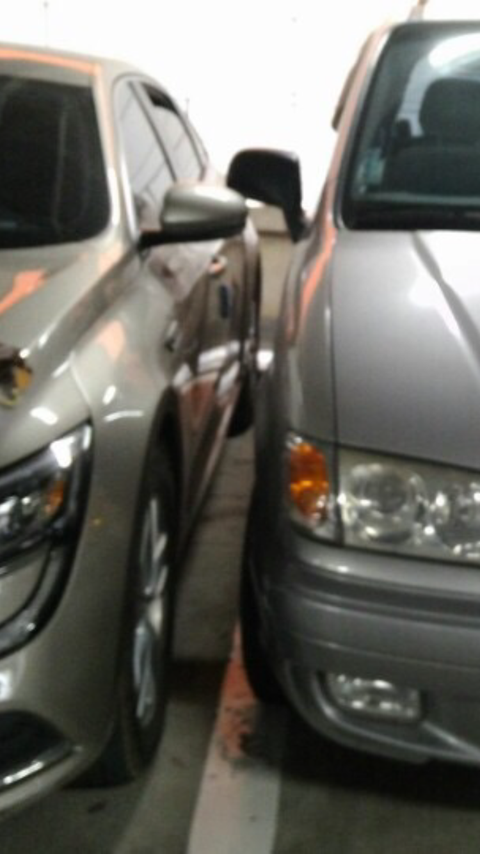 생각보다 사람도 없고 하여 즐겁게 영화보고 이제 집에 가려고 주차창으로 갓는데 세상에 옆차가 주차를 너무 바짝 대놔서 운전석으로 들어 갈 수가 없엇습니다 서로의 백미러가 교차되서 붙어잇는 형태엿습니다