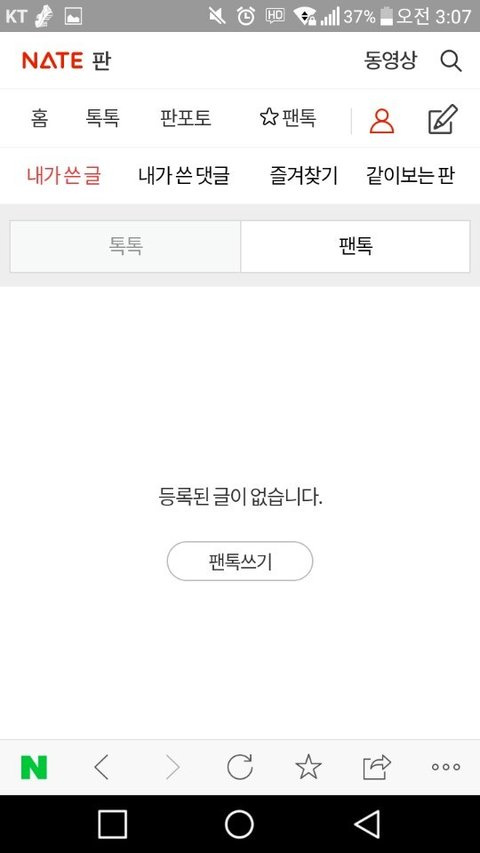 우선은 내아이디로 들어간 내가쓴글 팬톡글등 아무것도 없는거 먼저 보여드림