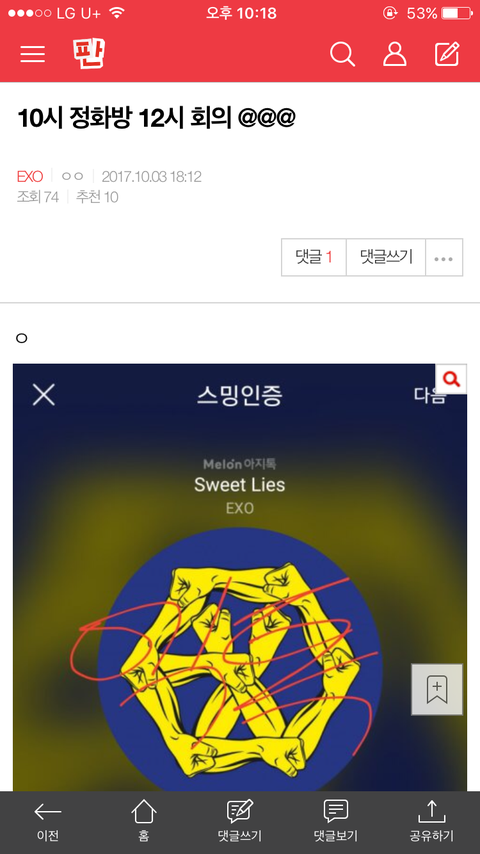 너희 공지 올린거 봤잖아 아무도 반박 안하고 그러고 이제와서 왜 못 달리게 하냐고? 오빠위에 커뮤 냐고? 그걸 너희가 할말이니ㅋㅋㅋ 너희가 저번에 그랬잖아 ㅈㅎㅂ 하는게 뭐냐고ㅋㅋㅋㅋㅋ 그럼 너희는 뭐하는데? 인증하기 귀찮아서 ㅈㅎㅂ 참여도 안하는거잖아ㅎㅎ