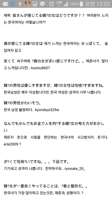 일본녀가 말하는 한국여자^^