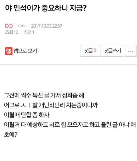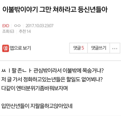 이런글 올라와도 추천수쩔고 정화방애들로 추측되는애들이 욕하면서 난리침