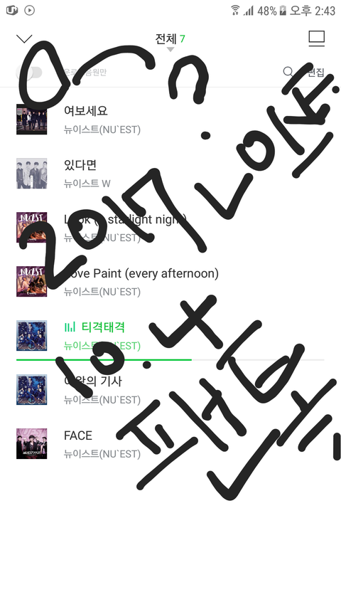 내가 아지구시험이 안끝낫어..우리가.쫌 시험을 늦게보거든..?군데 아예안돌리는건 좀 미안한거야..그래사 ㄴㅇㅂ뮤직에서 스밍100회받는게 있는거..그래사 그걸로 돌리고있눈데 네이트를 오늘 가입했어..나도 글을 쓰고 싶어서 스밍 한거 캡쳐히고 글써야되는데 스밍목록을 모르겠어..일단 숨위에 있는거 재생목록에 ㅇ넣어서 돌리고있눈데.. 그리고 내가 시험끝나면 멜론으로 스밍돌릴꺼라 멜론 스밍법도 알려주라!!