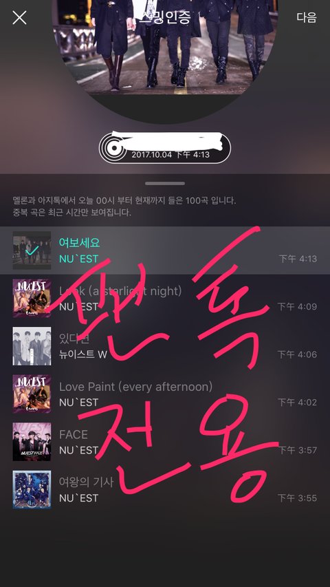 유혹(?)에 빠져서 ㅇㅈㅌ을 깔아 스밍인증을 배웠어. 스밍인증을 앞에 붙이는거 같은에 계속 뒤로감. ㅠㅠ 미안 ㅜㅜ 근데 아직도 좀 다르네. 내가 스밍목록을 잘못했나? ㅠㅠ 다음엔 스밍인증 완벽하게 배워서 올게~ 자세하게 알려준 러브들 너무 고마워. 세심하게 사진까지 보여줬는데 내 습득력이ㅠㅠ ㄴㅇㅅㅌ 들도 러브들이 있어서 얼마나 든든할까.