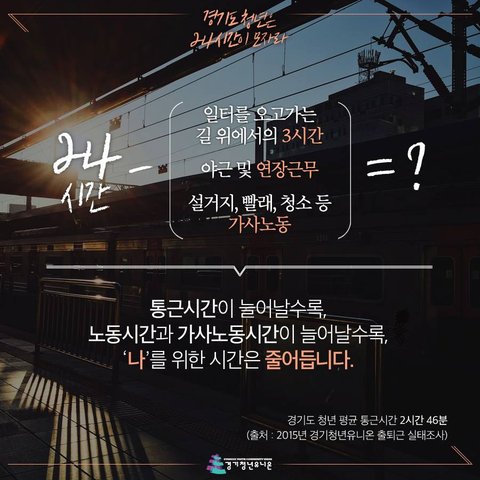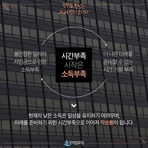 저희가 이번에 <경기도 청년 시간·소득빈곤 실태조사>는 경기도 청년들이 겪고 있는 ‘시간부족’ 과 ‘소득부족’ 현상을 연결하여 청년들이 어떠한 삶을 살고 있는지 이야기 하고자 합니다.
