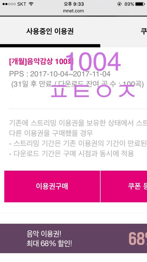 지1니랑 엠1넷 무료 스밍권 받았는데