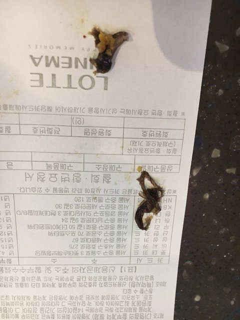 결국 극장 책임자가 팝콘에서 검은색 이물질을 분리하여 분해하였습니다. 바퀴벌레로 보이는 벌레로 보였고, 책임자도 벌레 같다고 하더군요. 개인적으로 화장실로 달려가 몇 번을 구토하고, 입을 헹구어 내야 했습니다. 이후 극장 책임자는 종적을 감춰버렸고, 부하 직원으로 보이는 사람이 대응을 하더군요.