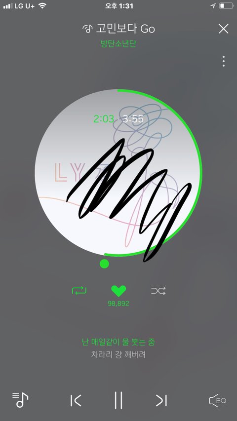 게이티 쓰는 사람 진희음악감상100회무료권 받아