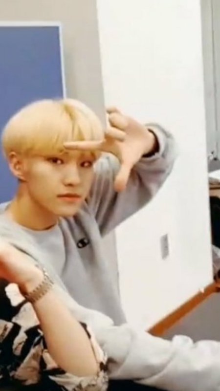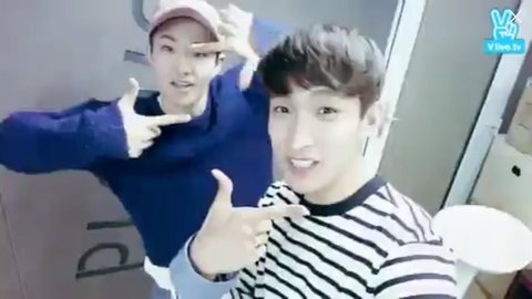 저거 브이앱 시작할때 아티스트 측에는 「」이런모양의 손모양이 뜬대 그거 따라하는거 같아