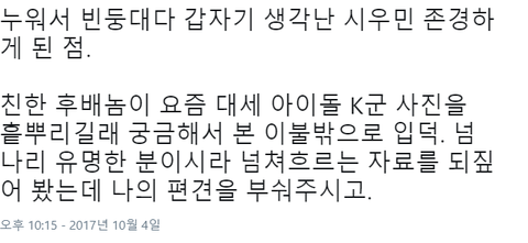 이불밖보고 입덕하신 거 같은데 (시우민)