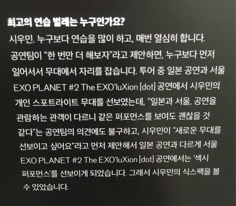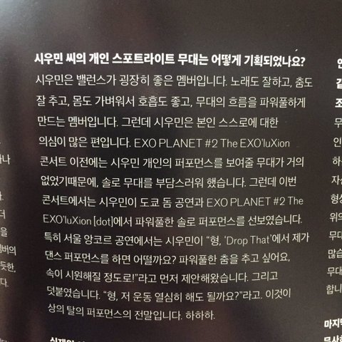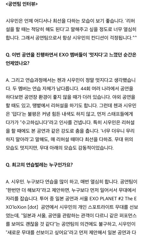 내 평생 아이돌 1도 모르는 순수 머글로만 살아오다 시우민 보고 긴 입덕 부정기를 겪으며 판 살짝 눈팅만 하고 있었는데 이 스탭 인터뷰 보고 바로 입덕함