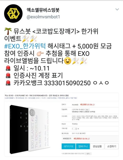 추석 용돈 받았으니 기분좋게 5천원씩 모금 고고~❤@exolmvsmbot1 계정 이름