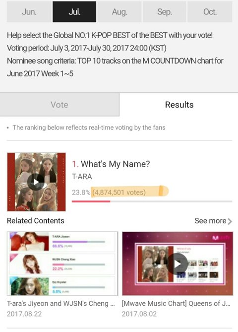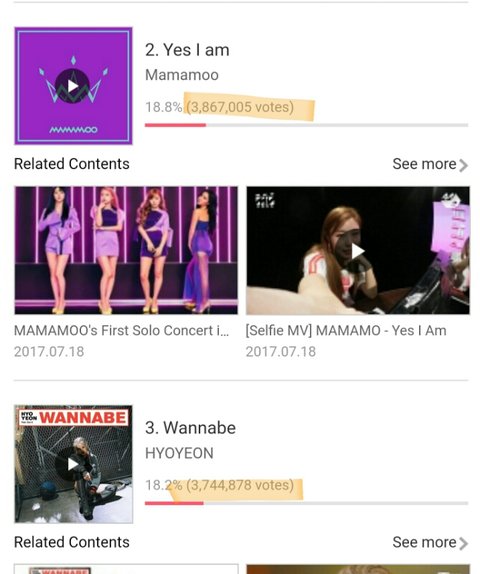 7월 타가수들 득표수