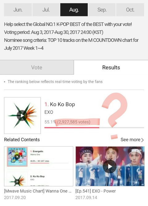 8월 엑소 득표수