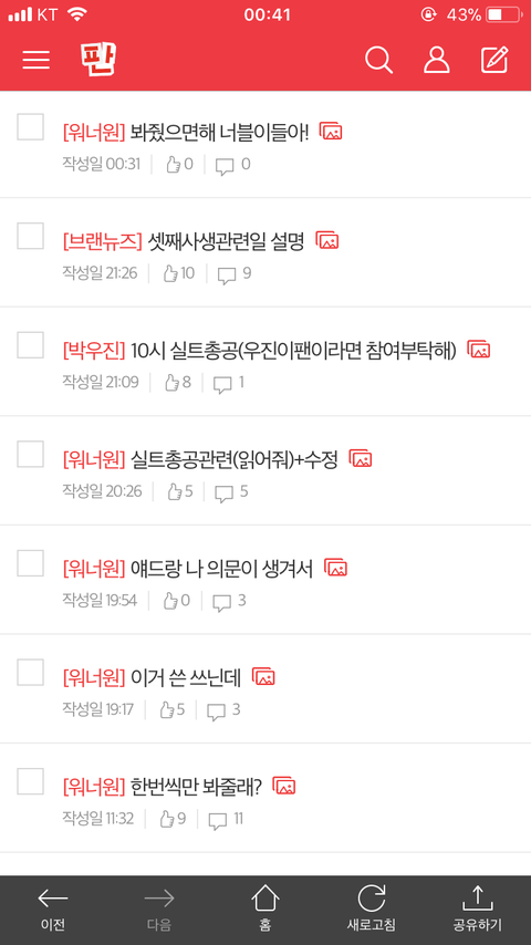 사실 이건 워너원 팬톡꺼 복사했어..지금 워낙 기운이 없는지라..