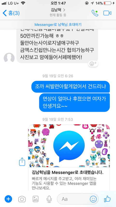페메에 계속 남혁이라는애 떠서 누구지 했는데 얼마전에 나한테 여자들한테 막친걸고 스킨십알바하자한 새끼였음 저런애들 신고 못함???? ㄹㅇ 개 빡팀