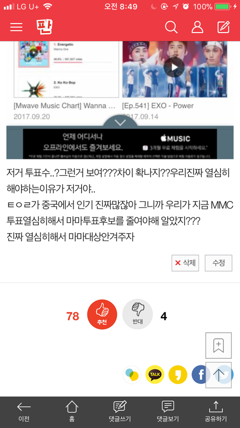 이거뭔데!!!!신기하니까 지니이용권쓸사람 한명댓다샘 그리고 저글보고난뒤에 진짜 정신차려서 열심히했으면좋겠어 우리 작년마마때 콜라보까지 포함해서 모든부문 투표1위였던거 기억해?? 우리할수있어 진짜 화이팅하자