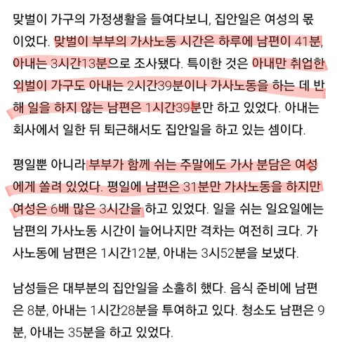 아내가 외벌이어도 아내가 일 더 많이하고