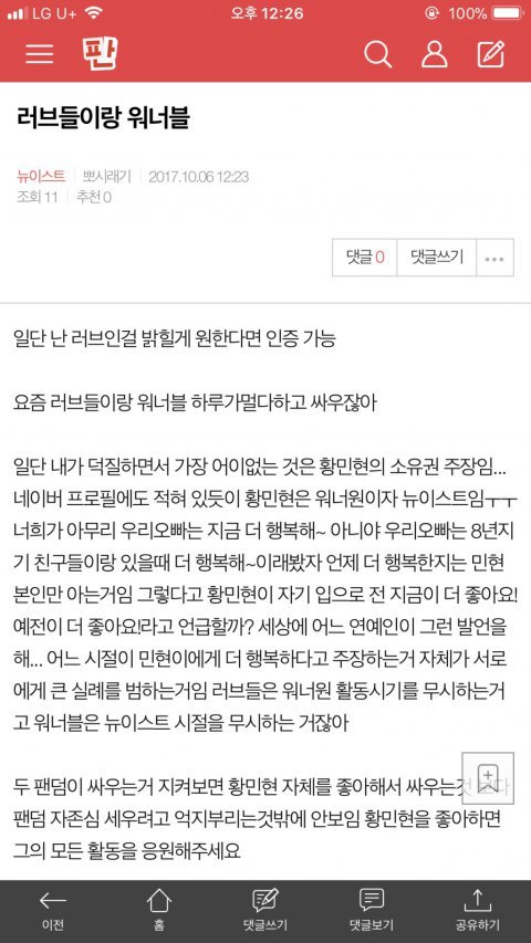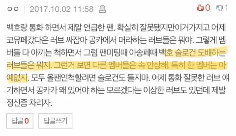 ex) ~개인팬이 %%%%했대, ~팬들 너무한거 아니야?
