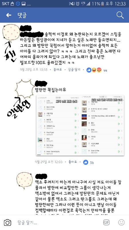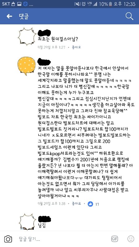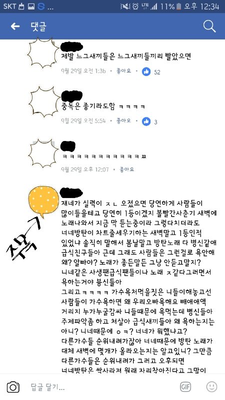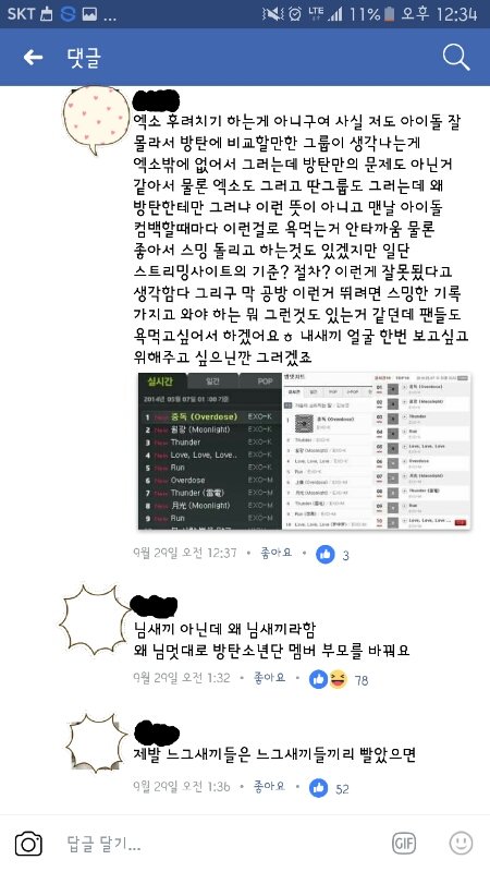 페북에서 벌어지는 아이돌팬VS일반인들