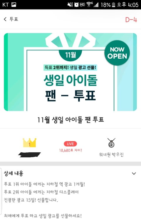 이미 하고 있는 참팬들 많겠지만 모르고있던 참팬들 부탁해 나도 안지 얼마안돼었는데 나같은 참팬들 많을것같아서.. 포토카드 라는 앱 설치해서 11월생일 아이돌 투표해주면 돼 우진이 지금 2등이야