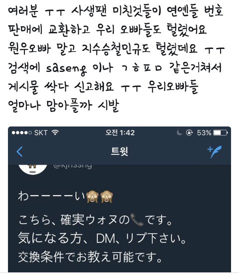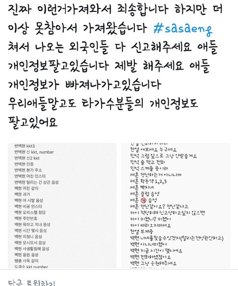 사생들이 애들 전화번호 안다음에 전화번호 돈내고 팔더라.. 이 해시태그로 들어가서 게시물들 다 신고해줘 ㅜㅜ 이 글 문제되면 삭제할께