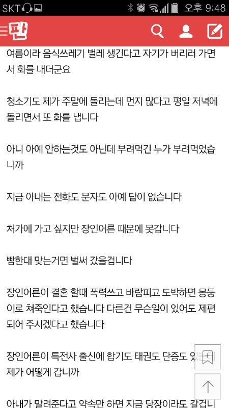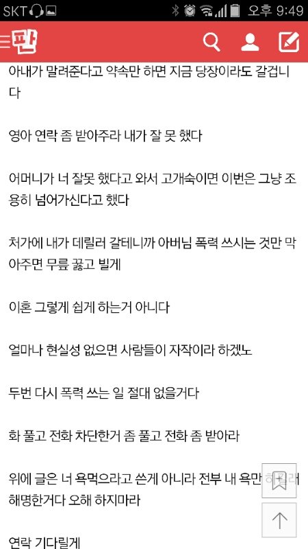 아버님 폭력무서워서 못가겠대ㅋㅋㅋㅋ아 진짜 찌질허다...이혼쉬운게아니면 뒈지게 처맞아도 가서 빌어야지 지가때린건 생각도않함?? 아 아내분 아니 영이씨 제발이혼하세요 이런찌질이랑은 사는거아닙니다~ 어머니가 자래서 잤다하고 어머니가 승질내서 못했다는데 이런 찌질이는 어머니품에서 벗어나질못할위인입니다~~~