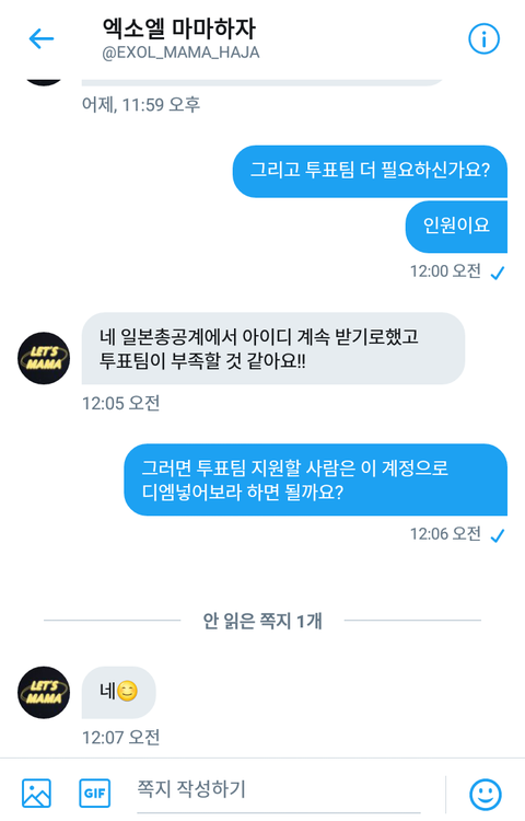 총공팀 팀장님(?)이랑 디엠했고 투표팀 부족하대!