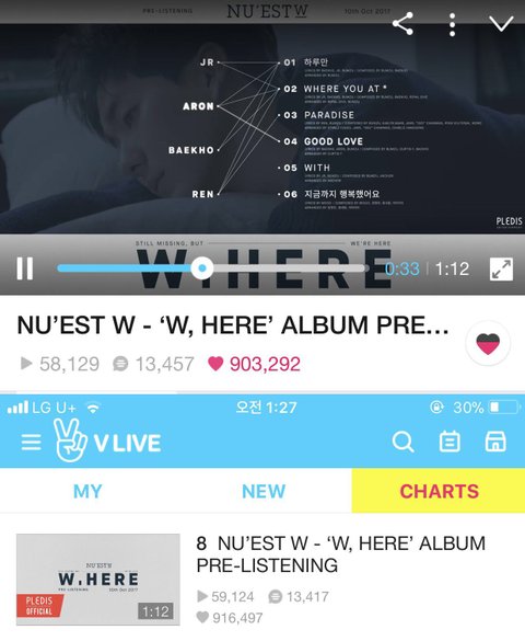 영상차트 8위에 하트수 90만이 넘었네❤️❤️