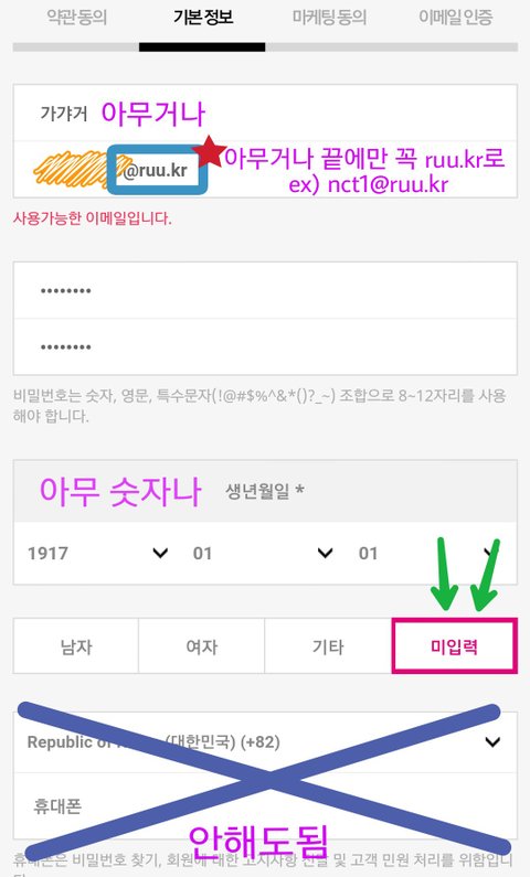 여기 이름 생년월일 아무렇게나 써도 상관없고