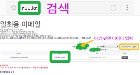 저기에 아까 썼던 이메일 주소 쓰면 메일 떠!
