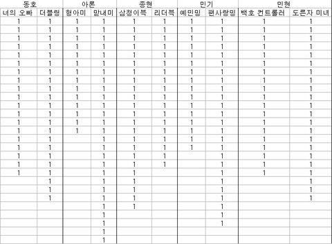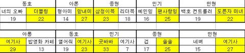 추가 민기 여기사랑 굿바바 경우 2명은 제외했어 한명은 기권 한명은 두개다 선택해서
