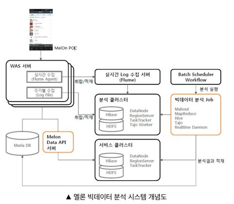 이게 빅데이터를 어떻게 분석하는지에 대한 개념도야 한 사람의 멜론 이용정보에서 저렇게 많은 과정을 통해 또 정말 많은 데이터를 산출해내고 또 합치고, 분석하고 또 합치고 분석하고 이렇게 해서 나온 게 '내부데이터' 다 이런 말이지!!