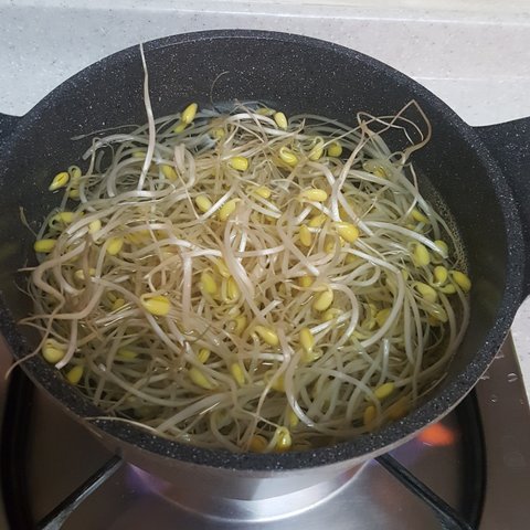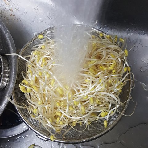 끓이는 사이 콩나물을 씻구욘