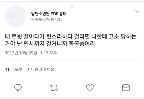 이삐들 피뎊잘따자 고소장 준비중인가보다