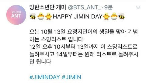 (공지부탁)지민이 생일날 스밍리스트나옴