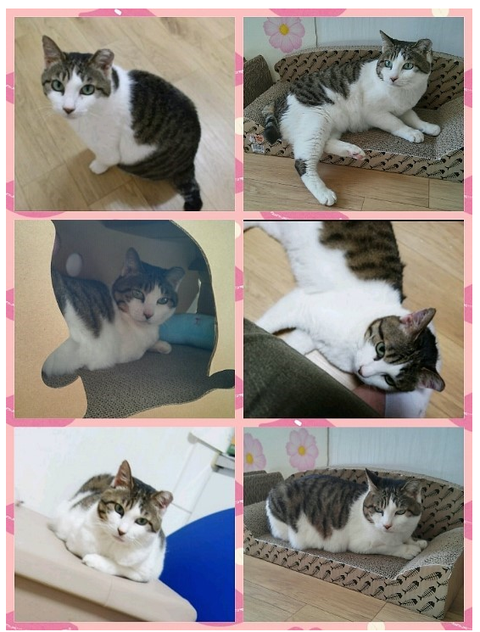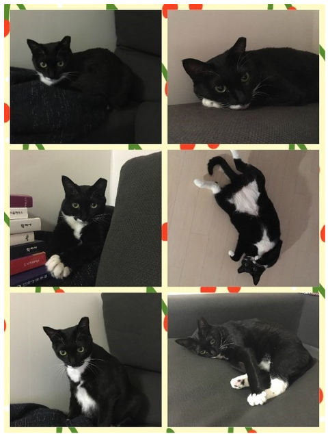 잘 먹고 잘 뛰어놀며 임보맘에게 늘 애교부리는 애교냥입니다.