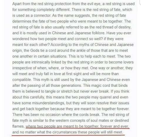 붉은 실은 어떤 고난과 역경이 있어도 함께 이어져 있고 영원히 함께 함을 의미한다.