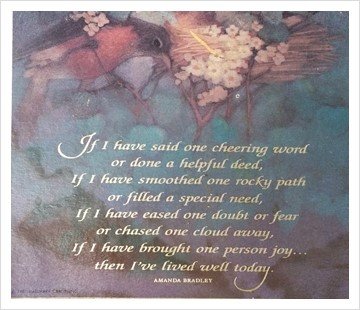 에밀리 디킨슨 시인은 내가 만일 병든 생명 하나를 고칠수 있다거나할딱거리는 새 한 마리를 도와서 보금자리로 돌아가게 해 줄수만 있다면내 삶은 결코 헛되지 않으리라 하였죠. 그리고 내가 만일 한 마음의 미어짐을막을 수만 있다면내 삶은 결코 헛되지 않으리 라 노래하였습니다.