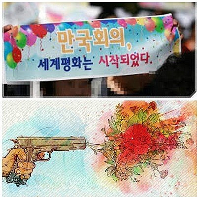 전쟁 무기가 변하여 생활 도구가 되고 ~~남북은 하나된 평화세계를 보여준 '평화 퍼포먼스'는 우리의 소원은 평화통일임을 여실히 보여주었습니다.