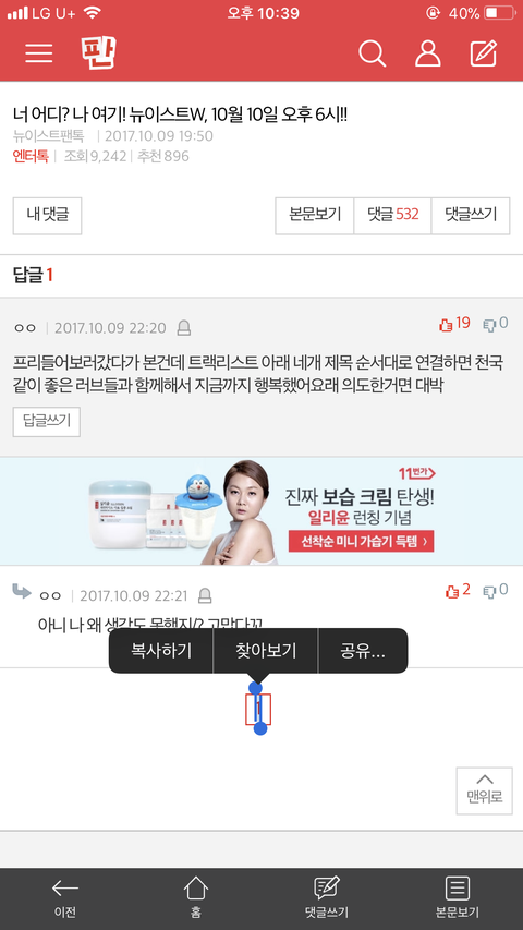 울 영업글에서 봤는데 나이거 생각도 못함(순찰단 럽은 아니지만 댓도 안달고 그냥 눈팅만 하고 있어)
