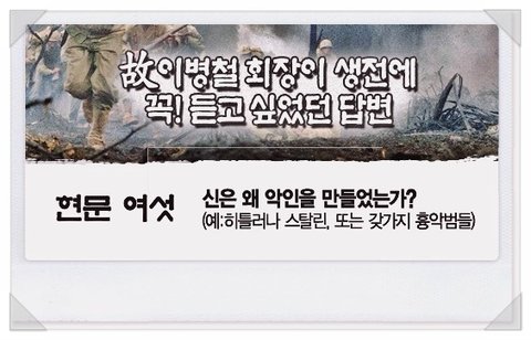 * 종교 24년, 성경퀴즈 <이병철 회장의 24가지 현문현답>