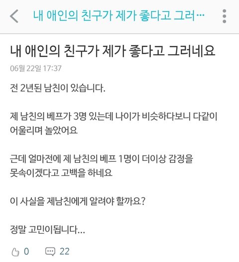 남친의 베프가 저한테 고백을 했어요ㅜㅠ