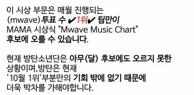 우리 엠웨이브1위못하면 마마에서 그어떤 대상도 못받는거야?