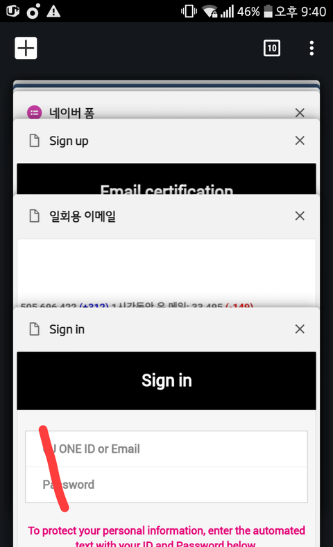 아이디 만들고 이 순서대로 해서 다 끝나면 아이디 하나 만드는 데 저 sign up 창 두 개 남는 거 아님? 루에서 링크 클릭하고 나오는 창에 핑크색 버튼 클릭하면 끝인 거 맞지???