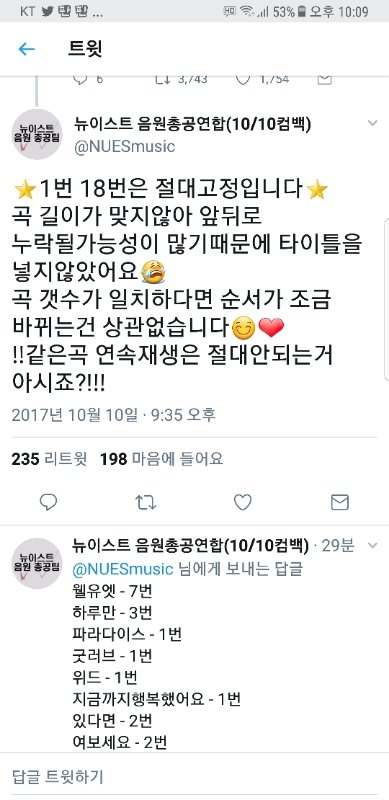 1번 18번 고정이고 그안에서 순서 상관없데 그래서 16번 웨얼유앳을 파라다이스 밑으로 넣어서 들어 보려고 서수 30분 기점으로 떨어지자나 그쯤인거 같아
