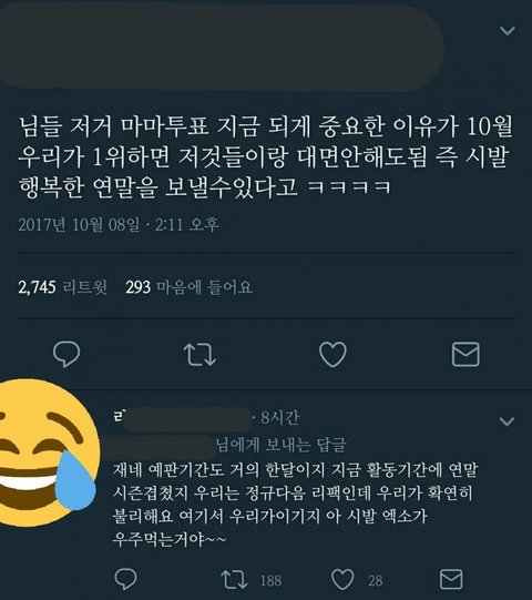 진짜 열폭러들 이것도 비추 테러ㅋㅋㅋ 여성 인권 타령하면서 잘난 애들한테는 심술 부림